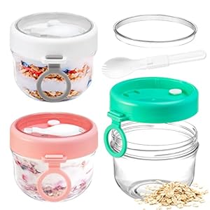 Food Storage, Home & KitchenPARBEE Overnight Oats Container with Lid & Spoon, 3 Set Cereal Container To Go, Leak-proof Yogurt Oatmeal Jars with Handle, Portable Breakfast Jars Milk On The Go Container